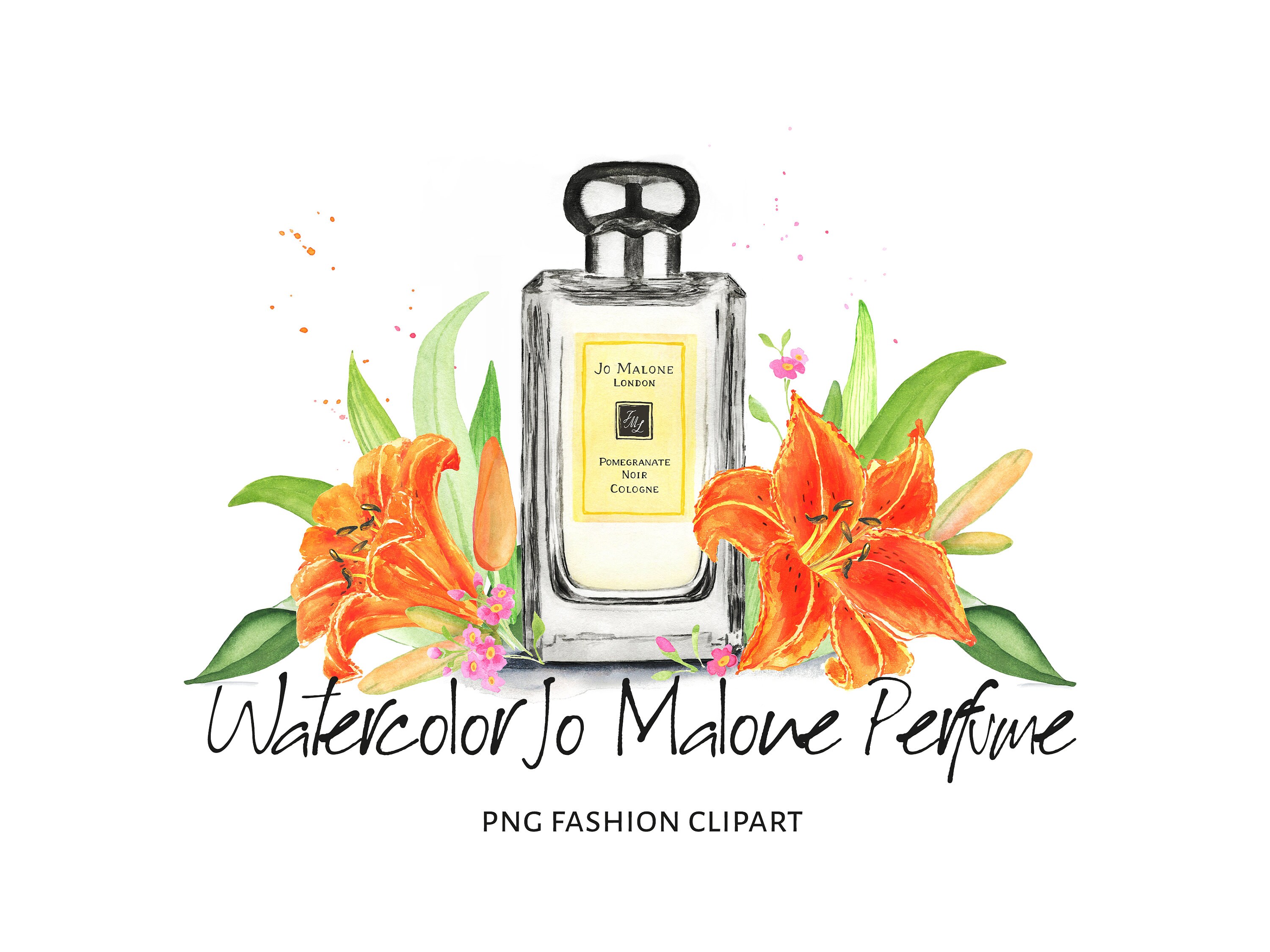 Watercolor Jo Malone Perfume Clipart With Lily Flowers Jo Etsy Denmark